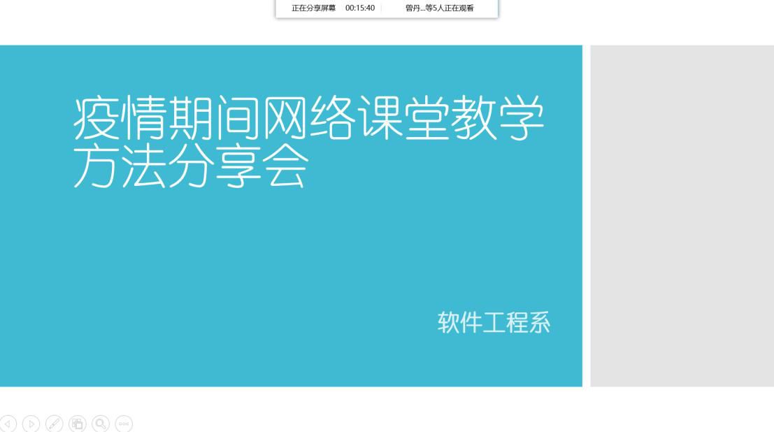 會上首先曾丹老師分享了在教授數據庫分析與設計的教學過程:由于網絡課堂的知識過于晦澀,學生普遍反饋不好,曾丹老師及時調整了自己的教學策略,改為QQ直播+在線互動方式。授課過程先對前期知識進行回顧,在講授新知識,或者講解到難點,會給學生3-5分鐘進行消化,讓學生可以更好的掌握知識。在程序講解過程時,先解釋程序問題,再讓學生做相同知識點的案例,然後發布在QQ群裡,在對學生程序進行改錯,加深學生對程序的理解。為了提高學生效率,建議學生每次課做筆記;每次課後根據學習知識,布置相關的作業。